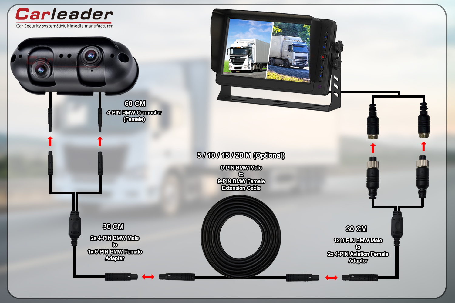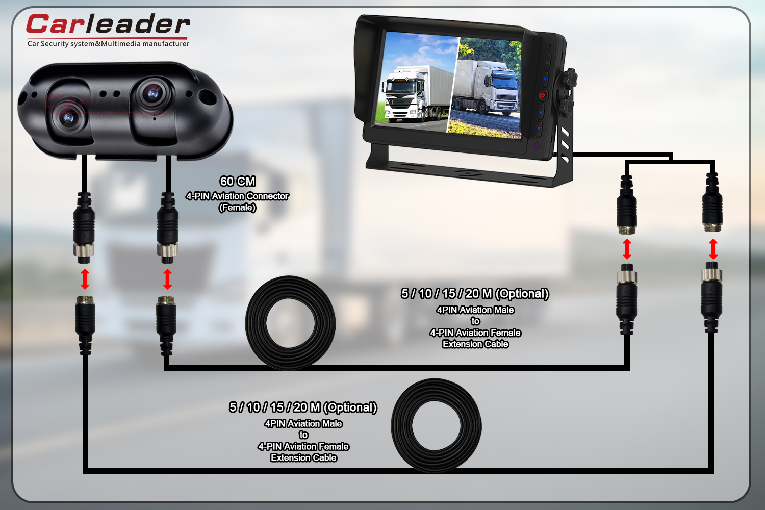 Karleadertarjoaa kaksi erilaista johdotusratkaisua Starlight -vedenpitävälle kaksoislinssille HD Heavy Duty Back View -kamera, joka sopii erilaiseen johdotustarpeeseen: