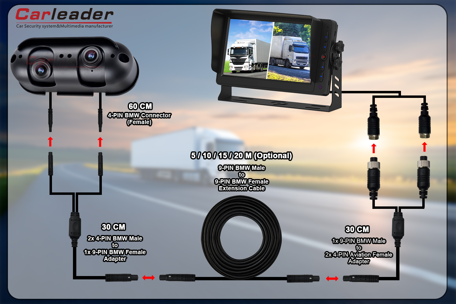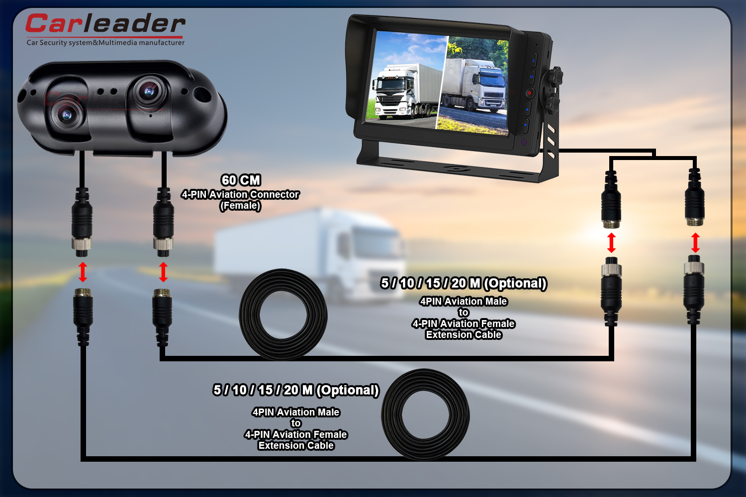 CarleaderStarlight AHD Dual Lens Heavy Duty peruutuskamera, parantaa ajoneuvon turvallisuutta ja näkyvyyttä korkearesoluutioisella objektiivillaan, tämä kamera tukee myös WDR-toimintoa kameran kuvan laadun parantamiseksi. Näillä kahdella valinnaisella johdotusratkaisulla toinen on helppo kytkeä ja toinen on erittäin yhteensopiva. toimivat täydellisesti käyttäjän kanssa, jolla on erilaiset johdotustarpeet.