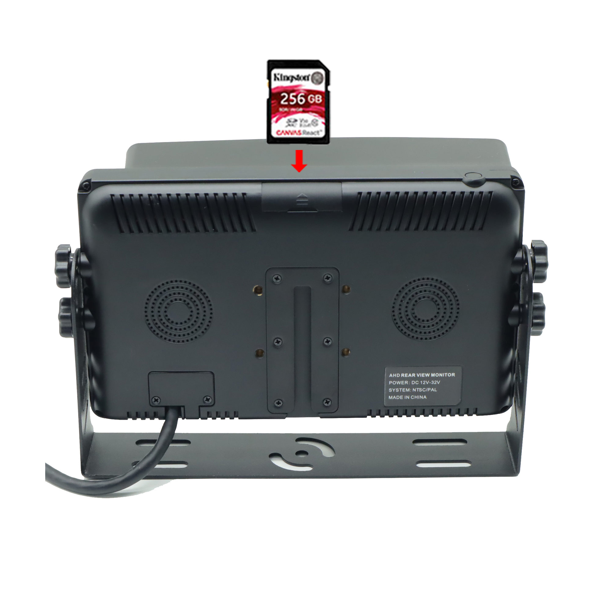 Carleader 7 tuuman 4CH AHD-tulot Quad View Display -näyttö tukee DVR-tallennustoimintoa, SD-korttipaikka näytön takana, maksimikapasiteetti on jopa 256 Gt. Ominaisuudet silmukkatallennustoiminnolla, voivat automaattisesti tallentaa kameran videon ja toiston.