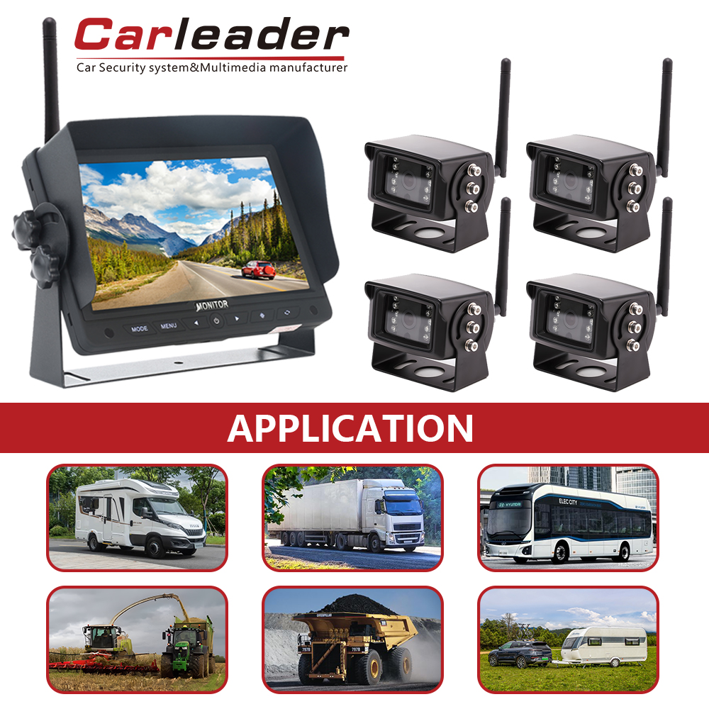 Monipuolisuus: Carleader 7 tuuman 2,4 G digitaalista langatonta 2-kanavaista jaetun näytön kamerajärjestelmää voidaan käyttää useissa ajoneuvoissa, kuten matkailuautoissa, linja-autoissa, kuorma-autoissa, perävaunuissa jne.
